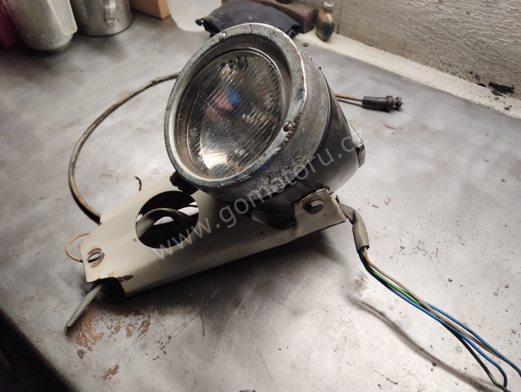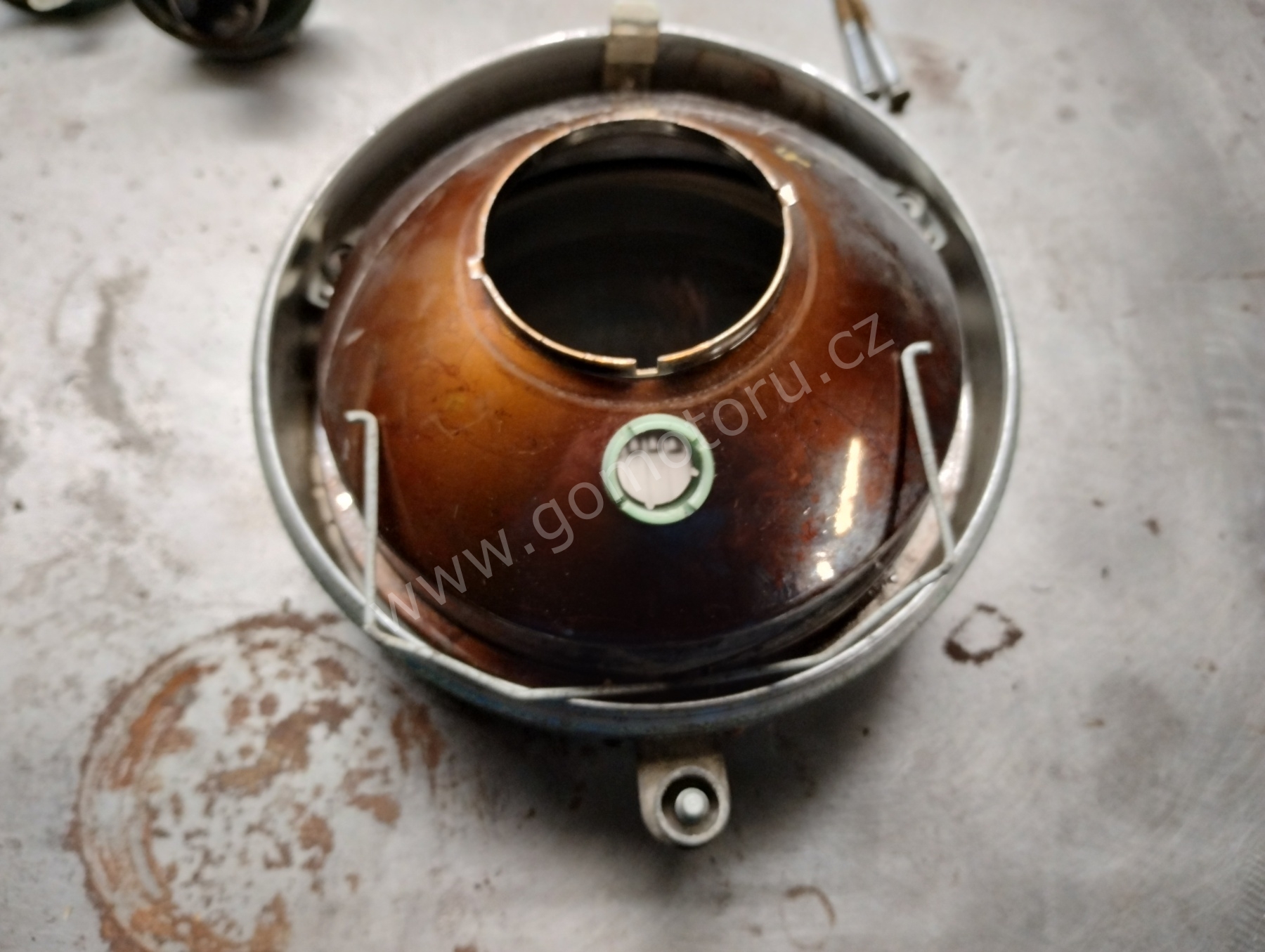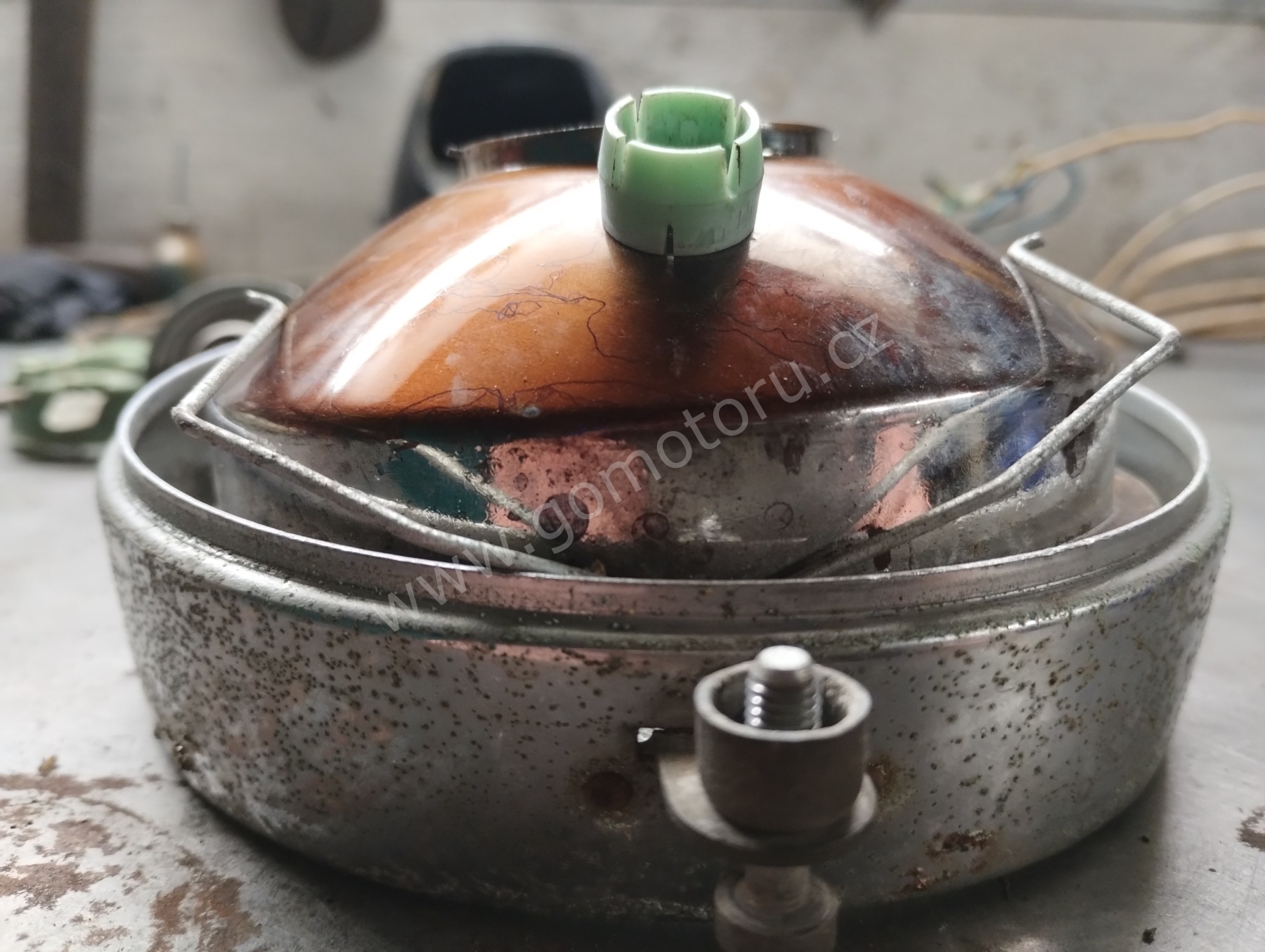 Rozebírám přední část motocyklu. Potřebuji odstrojit kompletní předek abych se podíval v jaké stavu je ložisko řízení. Vyčistím jej a připravím na vaření dorazu řízení. Nejdříve sundám držák předního světla se všemi komponenty. Rovnou si díly procházím, hodnotím a rozhoduji o jejich budoucím osudu. Nejvíce mě ale zajímá přední vidlice.