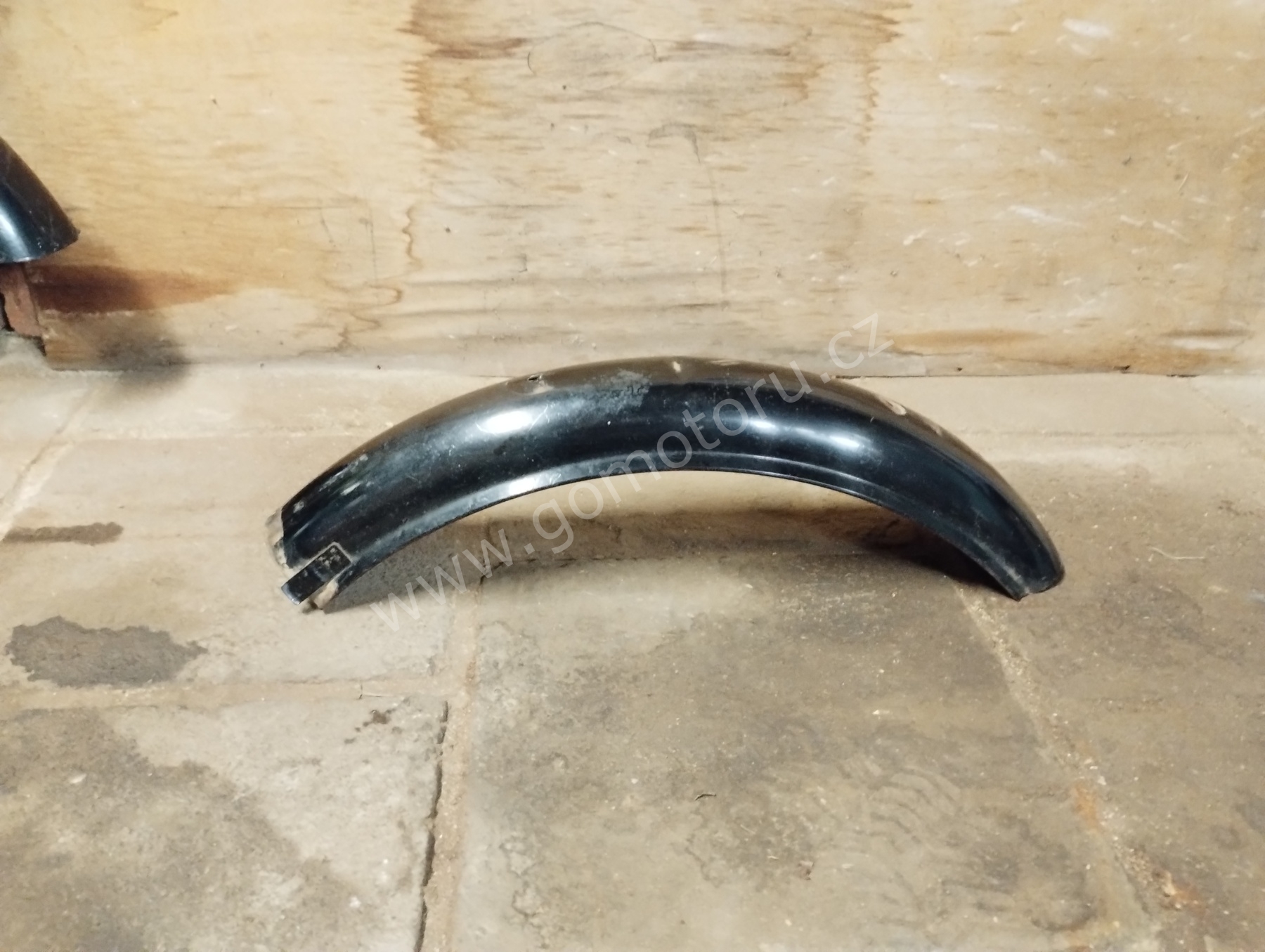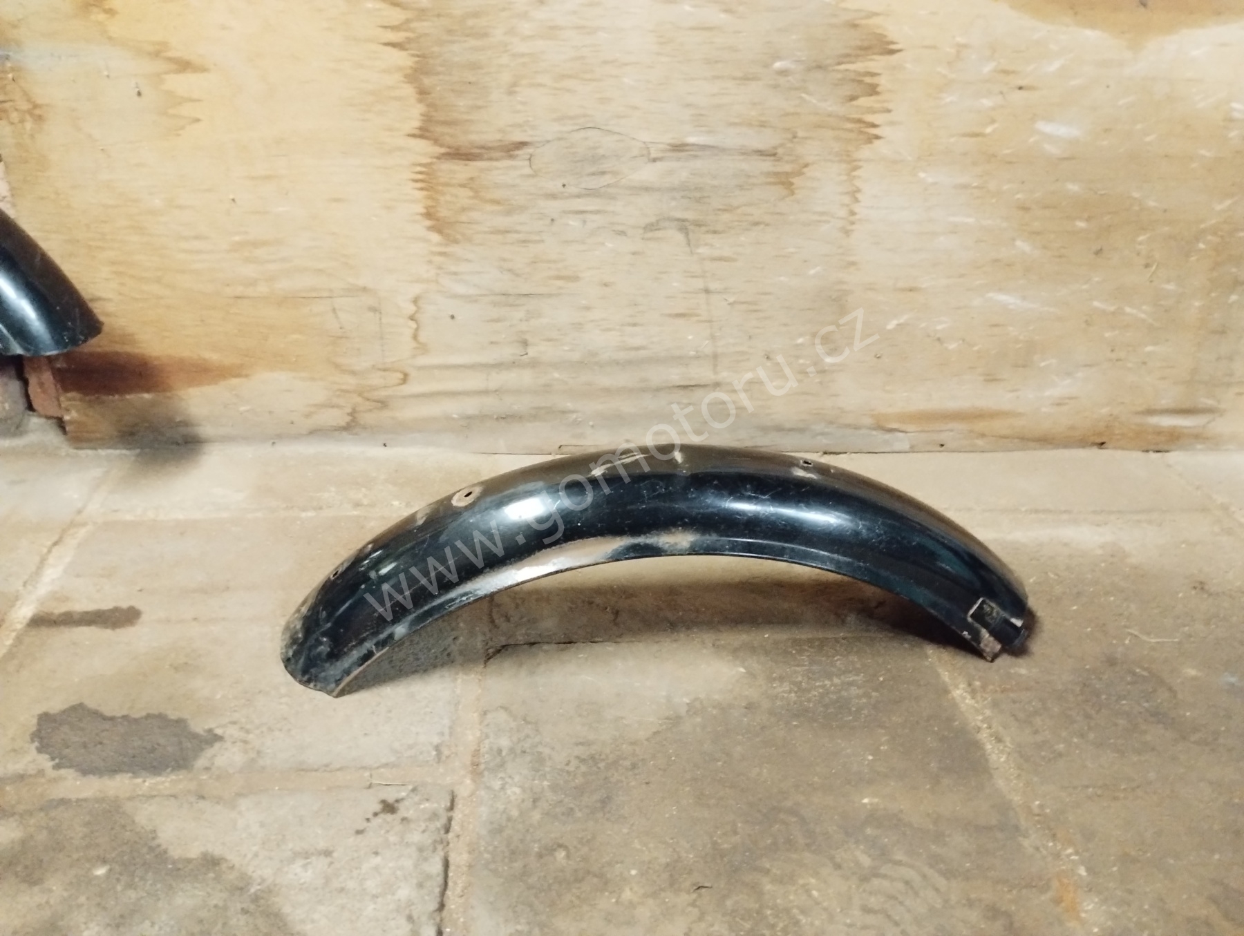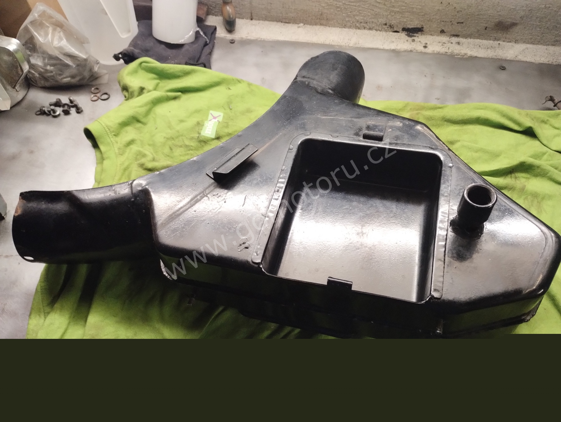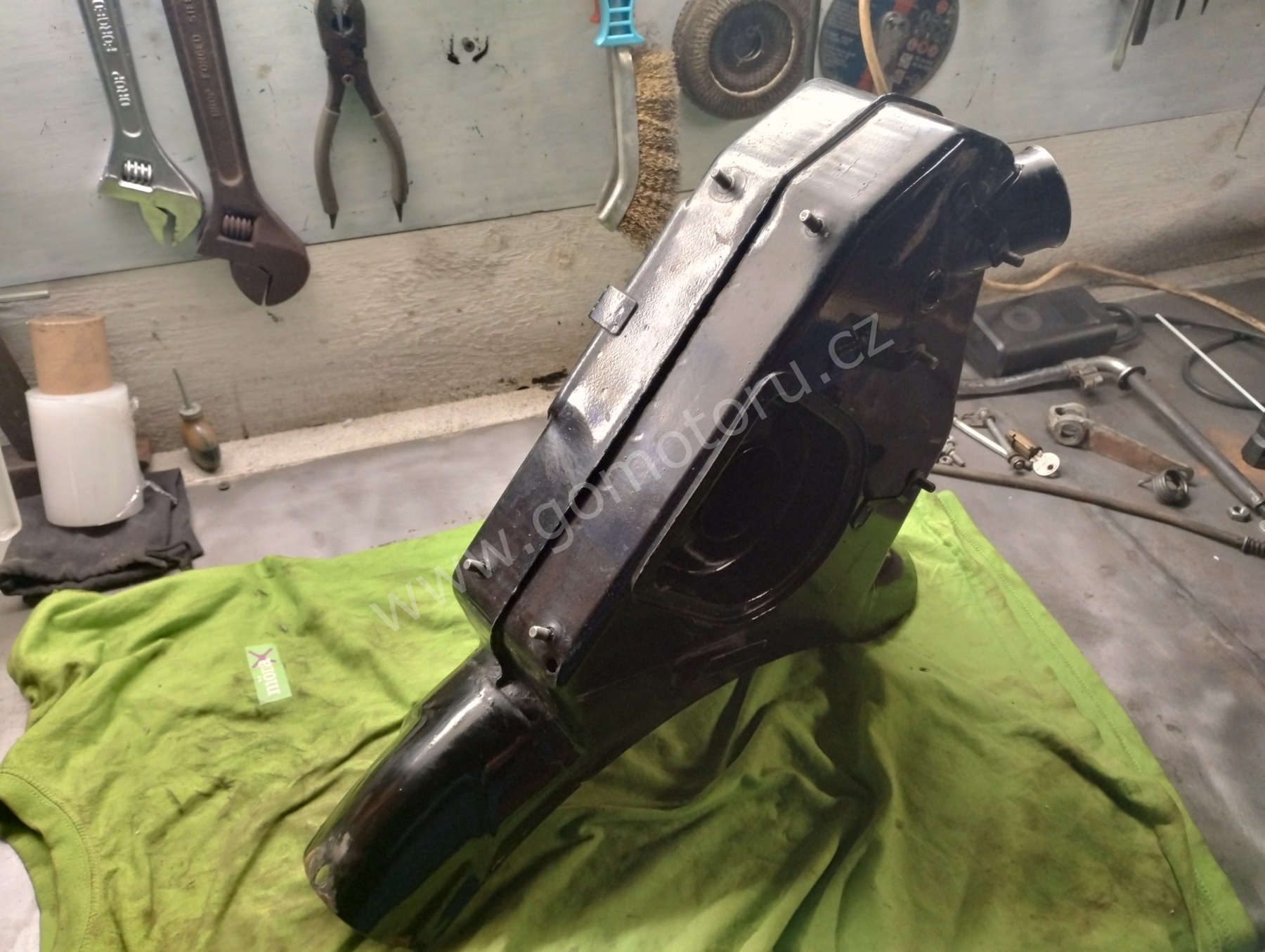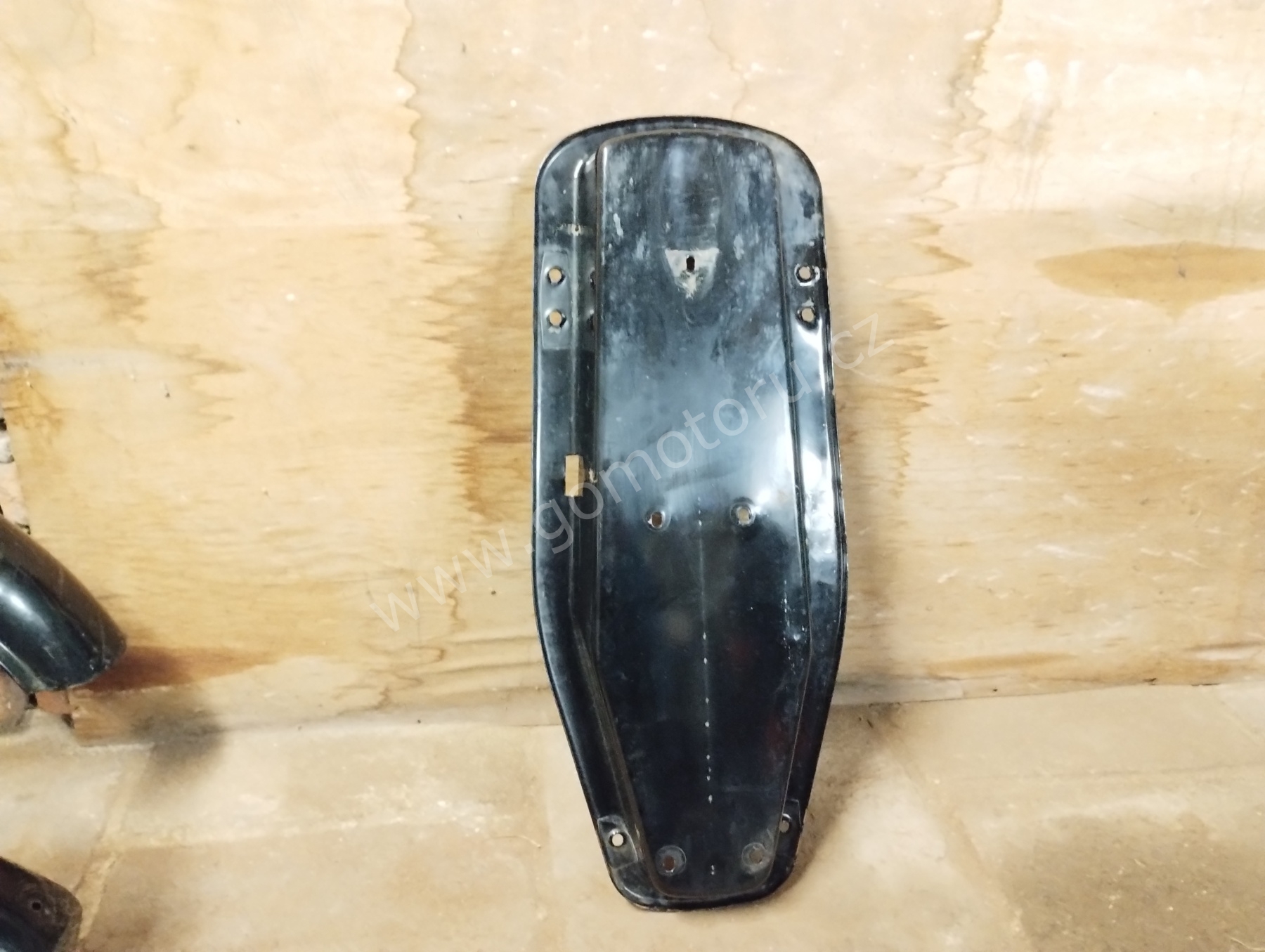 Zadní blatníček mám také vyčištěný a přeleštěný. Uvažuji, zda mám promáčklinu vyrovnat, ale rozhodl jsem se jí ponechat. Protože je promáčklina ukrytá pod trubkou rámu a na vizuální stránce motocyklu nic nemění, nechám ji tam.