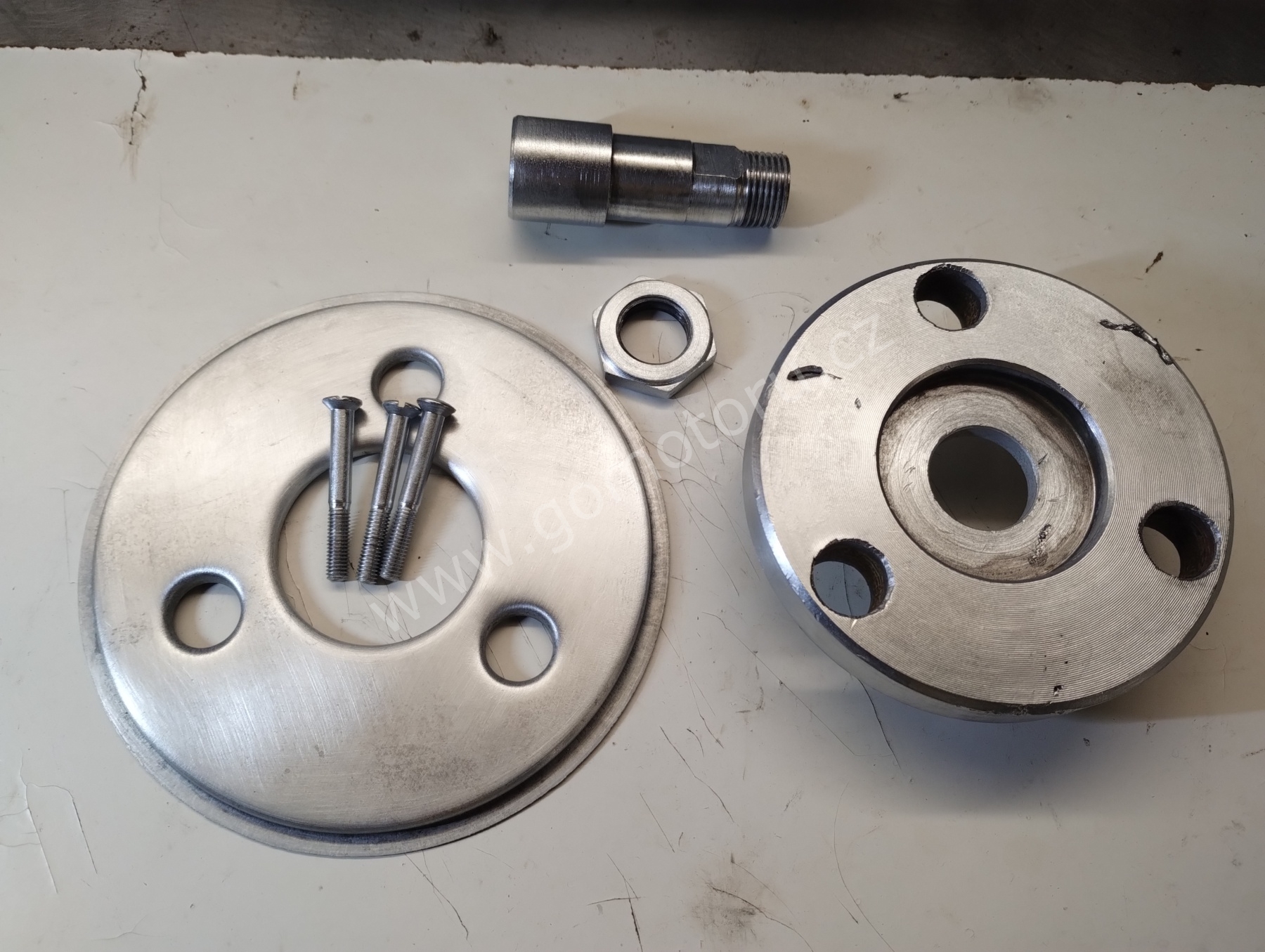 Ve třetí etapě zinkuji díly ze zadní rozety. Plechovou krytku, unašeč, čep s maticí a šroubky na spojení krytu řetězu. Podruhé zkouším zinkovat velké díly. Naštěstí se daří a s výsledkem jsem velice spokojený.